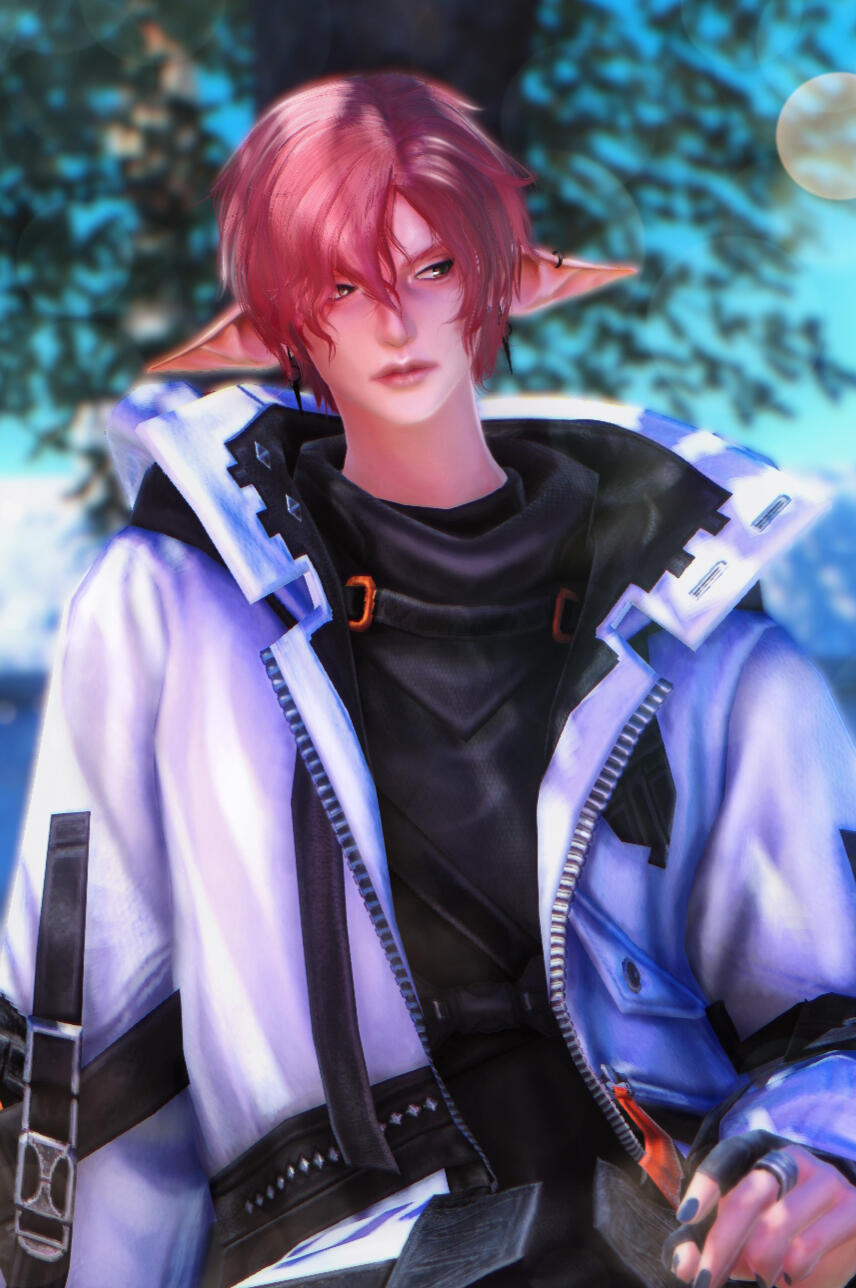 Alointe is an elezen who has dark hair with frosted tips, a trait passed in his family only unique to his bloodline. He appears cold and loves to play devil's advocate at times. He is a man of few words and appears formal and polite, though is just awkward when it comes to small talk, preferring to just be by himself in social situations.