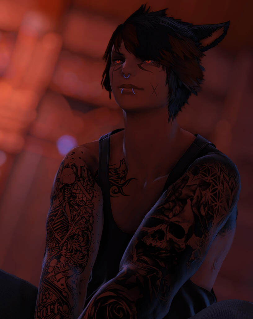 While she knows very little of her savior, she knows that he has connections to the Scions as their illusive informant. She in turn also helps the Scions with the power of her echo and runs errands around Eorzea in exchange for money and information.She also helps her rescuer, whom she now calls her 'master' with their Tea-House, gathering information she overhears and passing it to him. Obsessed with her affection for him, she had in many instances also helped him with assassinations and tasks too incomprehensible and inhumane.She can be found in the master's Tea-house in Ul'dah or her own place in Mist, a house that her master had given her to rest and recuperate when they first arrive.