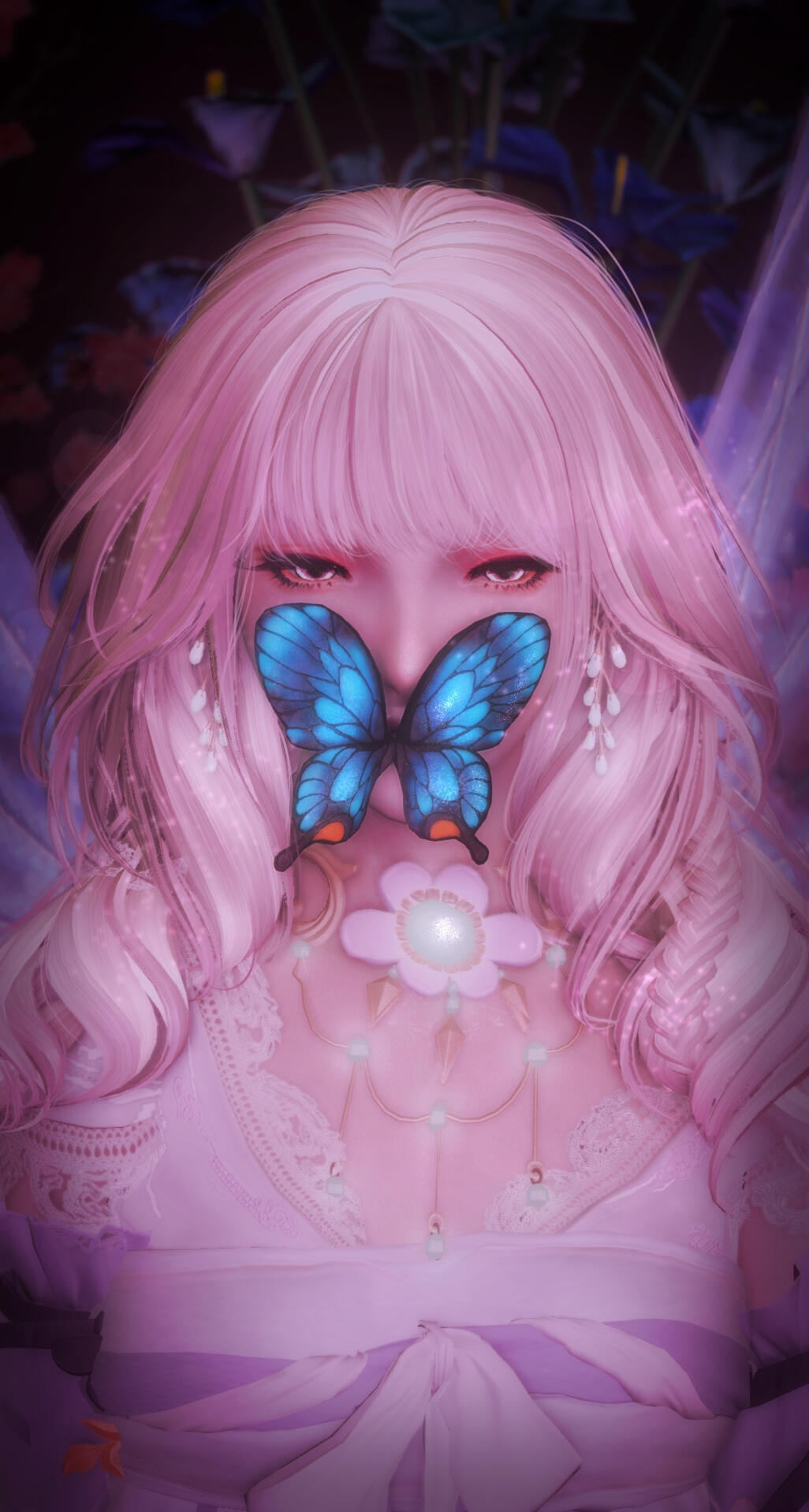 Rinne has pale skin with pastel pink hair. Her eyes are in the same shade of her hair and she seems to adore flowers and butterflies alot, decorating herself with them whenever she can.